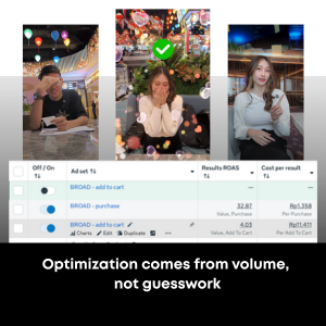 Manajemen iklan dengan fokus utama pada konversi, bukan sekadar impresi. Kami memproduksi materi iklan dengan berbagai angle, format, dan pendekatan kreatif. Setiap A/B testing dilakukan melalui proses kurasi dan evaluasi data yang ketat, bukan sekadar variasi asal tayang.